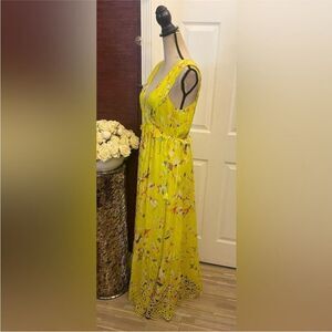 Tanya Taylor silk/cotton Yellow V-Neck Sleeveless Maxi eyelet Sundress, US4