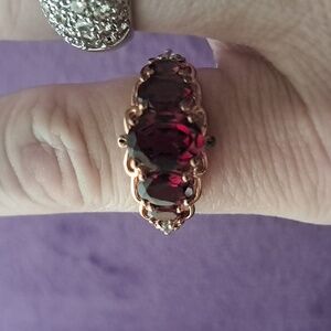 Genuine Natural Tanzanian Wine Garnet and Natural White Zircon Ring. Beautifully Set In 18kt Rose Gold Vermeil Over 925 Sterling Silver.