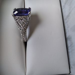 VANNA K (TM) is the designer of the ring its a 10.32CTW TANZANITE & DIAMOND SIMULANT sterling silver ring