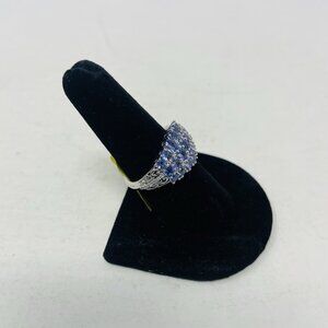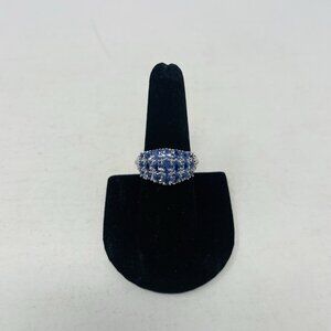 Tanzanite Cambodian Zircon Size 9 Platinum/Sterling Silver Cluster Ring 5057