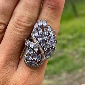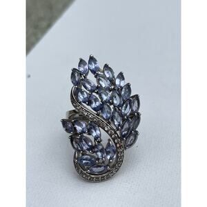 Tanzanite & Diamond Ring Sterling Silver - Signed