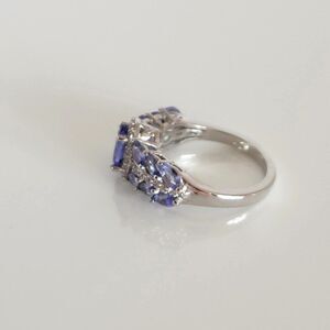 - On each side of the center stone are 6 tanzanite round 1 mm faceted accents.