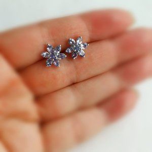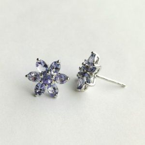 Pretty and fresh! Lavender blue tanzanite gemstones , marquise cut and set into a flower design, in sterling silver. 7 stones per earrings.
