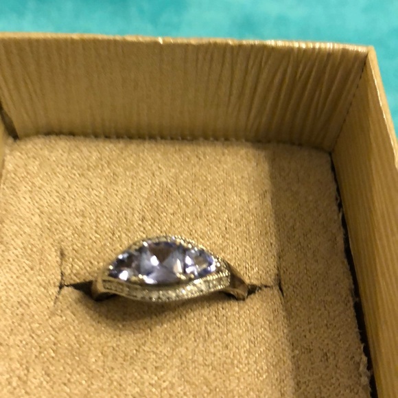 Beautiful Tanzanite ring middle stone princess cut trillions on each side diamonds around great holiday gift