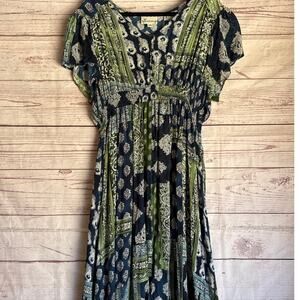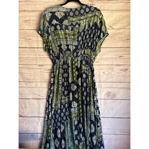 Tanzara Blue and Green Maxi Dress Sz 2X