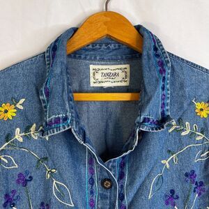 Tanzara Denim Embroidered VTG Button Front Shirt Casual Y2K Retro Size 2X/3X**