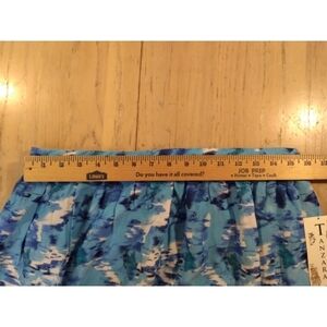 Blue and white watercolor look skirt from Tanzara. Crochet hem detail. The waistband is pinned in the dress form pictures so it stays on my dress form.