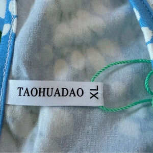Taohuadao XL Shirt Top Blue Floral Short Sleeve Scoop Neck Stretch Lace Trim