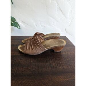 Taos Brown Leather Slip-On Slide Heel Sandals Shoes