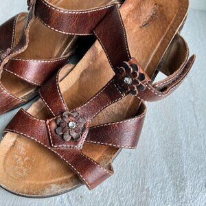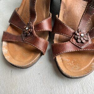 Taos Brown Leather T-Strap strappy Wedge Sandals Size 6 Jeweled