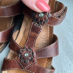 Taos Embellished Brown leather T-Strap Sandal, size 6