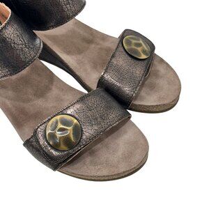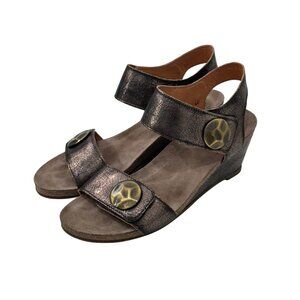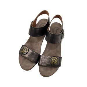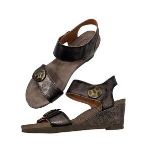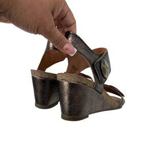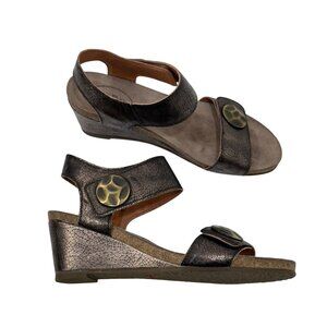 Taos Brown metallic Crackle Leather Adjustable Strap Women Wedge Sandals Size 40