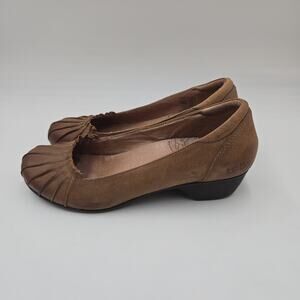 Taos Calypso Women's Heel Pump Comfort Pleated Slip-On Leather 8 Brown Comfort