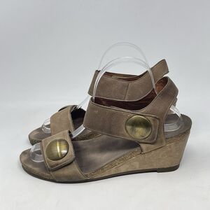 Taos Carousel 3 Wedge Sandals Womens 8 - 8.5 Brown Leather Ankle Strap Cork