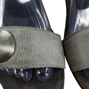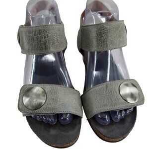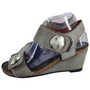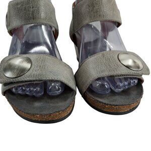 Taos Carousel Gray Leather Wedge Sandals Size 37 US 6-6.5 Adjustable 3209 Pewter