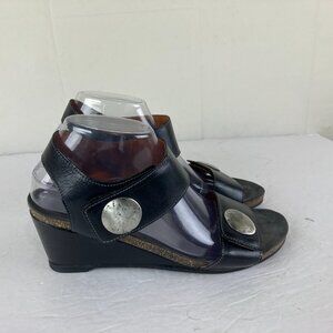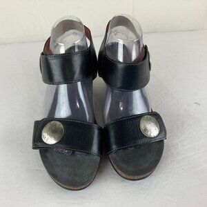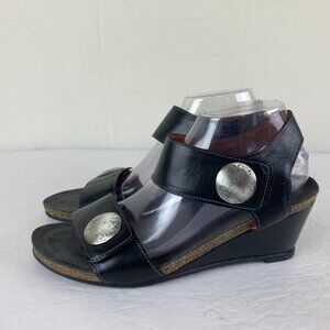 Taos Carousel Sandals Women's 40 / 9 Black Leather Low Wedge Comfort Shoe