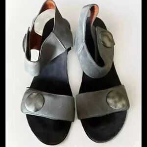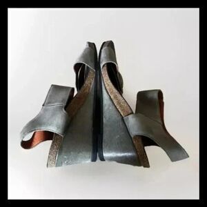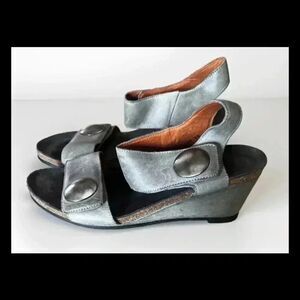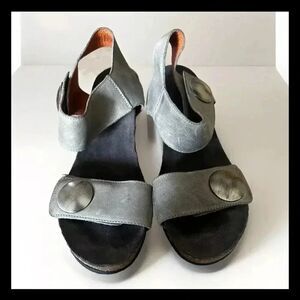 Taos Carousel 3209 Gray Leather Wedge Slingback Sandals Womens EU 38 Size 7-7.5