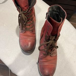 Taos Crave Boots. Still in great condition - made to look rugged. Love them, but my feet have gotten bigger and they no longer fit! Can’t find my original order, but the color is similar to red or garnet. Size 38 (similar to US size 7.5).