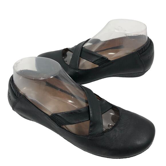 Taos Crosstown Ballet Flats Shoes Size 37 6 - 6.5 Black Leather Criss Cross