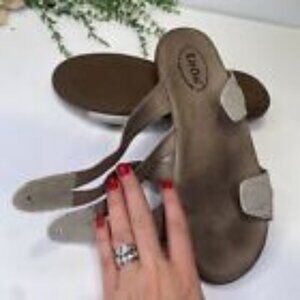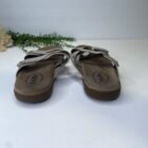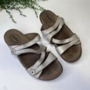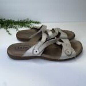 Taos Double U Leather Strappy Slide Sandals Size 9M in Silver Colorway