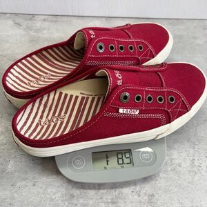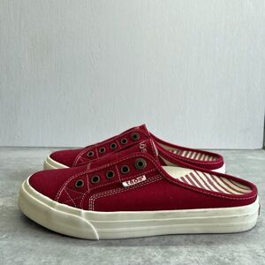 Taos EZ Soul Red Canvas Slip-On Flat Comfort Mule Sneaker Shoes Womens