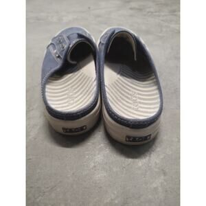 These Taos EZ-Soul slip-on shoes are perfect for casual wear. They feature a comfortable design with a stylish denim upper and a white rubber sole. The shoes are in good condition with minimal signs of wear. The interior is clean, and the exterior shows slight scuffing on the rubber sole. Visible text includes the brand name 'Taos' and the model number 'ESL-13696', ensuring authenticity and quality. These shoes are versatile and can be paired with various outfits, making them a great addition to your wardrobe.