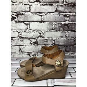 Selling Taos Festival Brown Leather Cork Wedge Ankle Strap Sandals Women Sz 37EU/6.5M US