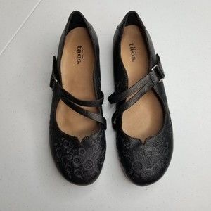 Chic black loafers with detailed patterns. Adjustable strap for a snug fit.