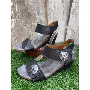 Taos Footwear Carousel Women's Black Silver Exotic Wedge Sandals Size EU37