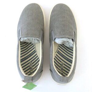 Comfortable gray slip-on loafers. Stylish and versatile design.