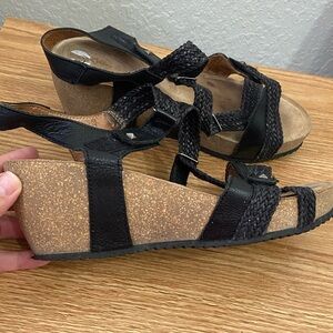 Taos Footwear Women's Julia Wedge Strappy Sandals Black Sz 8-8.5