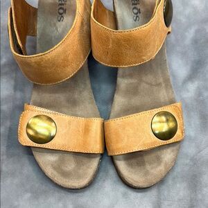 Taos Footwear Tan and Gold Sandals with Ankle Strap