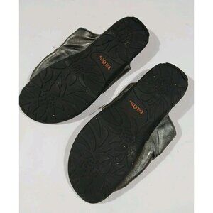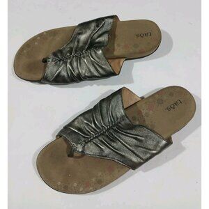 Taos Gift 2 Silver Leather Slide Thong Sandals. Size 12. Pewter Metallic. Comfort. In nice, preowned condition. Wear to footbed as shown (near toes).