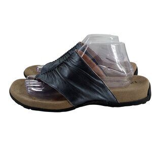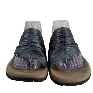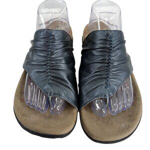 Taos Gift 2 Silver Leather Slide Thong Sandals Size 11 Comfort Pewter Metallic