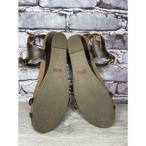 Taos Gold Brown Leather Ankle Strap Cork Wedge Sandals Women Sz 42EU/11M US