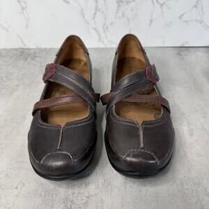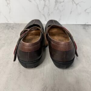 Women's Jigsaw Leather Mary Jane Clogs by Taos, US Size 7 1/2 EU 38, Brown Color, Ankle Strap, Arch Support, Slip On, Loop Closure, Closed Toe, casual, work, travel, regular, everyday wear.