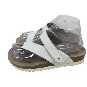 Taos Lola White Leather Toe Loop Sandals Size EU 37 US 6.-6.5 Thong Hook & Loop