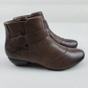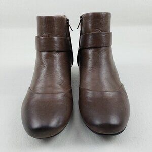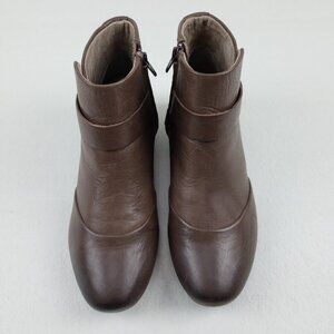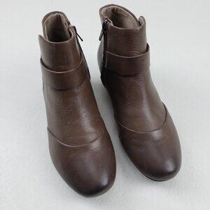 Taos Model Ankle Boot Womens 7.5 Brown Leather Side Zip Strappy Comfort Bootie