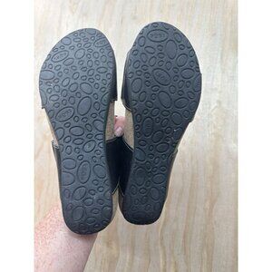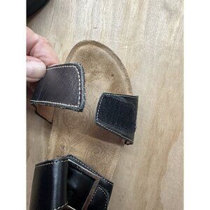 Taos “My Dear” Black Sandals 40 9/9.5 Hook And Loop Buckle Leather Cork Wedge