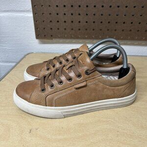 Taos Plim Soul Lux Caramel Brown Leather Sneakers Womens Size 8.5 Casual Shoes