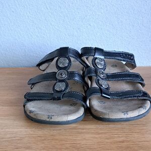 Taos Prize Womens 9 Black Leather Slip-On Strappy Sandals 689