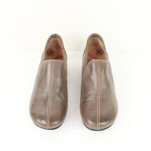 One pair of brown leather cushioned padded slip on closed toe arch support orthopedic pumps heels clogs slip-on shoes by Taos Footwear in a women's size 8.