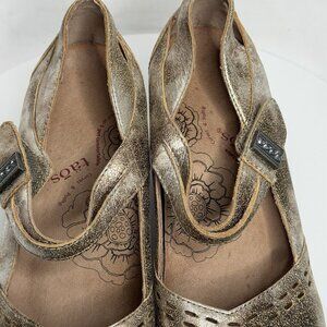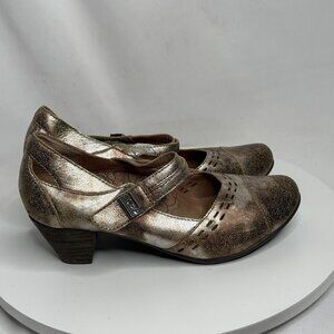 Taos Stunner Women's 6.5 Mary Jane Heels Antique Gold Leather Cap Toe Laser Cut