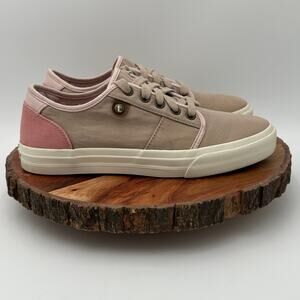 Taos Super Soul Canvas Sneakers Sz 8 Tan Pink Preppy Coastal Minimalist Comfort