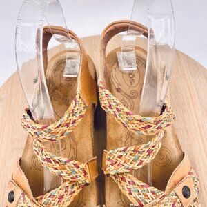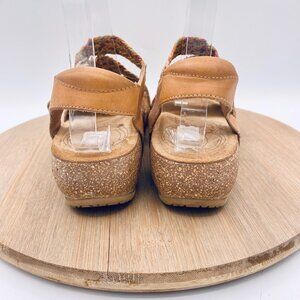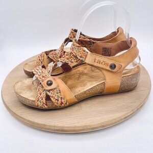 Taos Trulie Sandals Womens 7/7.5 Tan Leather Ankle Strap Orthotic Flats Peep