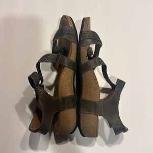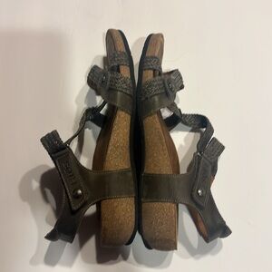 Taos Trulie leather lightweight sandals grey green Velcro closures made Spain