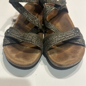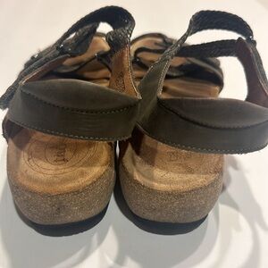 EUC sandals that look greenish grey. Super comfortable. Size is 11 -11.5 as shown. Minor wear and scratches.