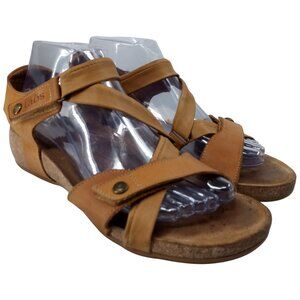 Taos Universal Beige Leather Comfort Wedge Sandals Size 40 US 9-9.5 Adjustable