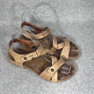 Taos Universe Leather Sandal Womens 6-6.5 US Tan Adjustable Straps Cork Footbed