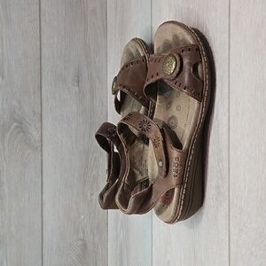 Taos Women Brown Hook&loop Leather Sandals Shoes Sz 8